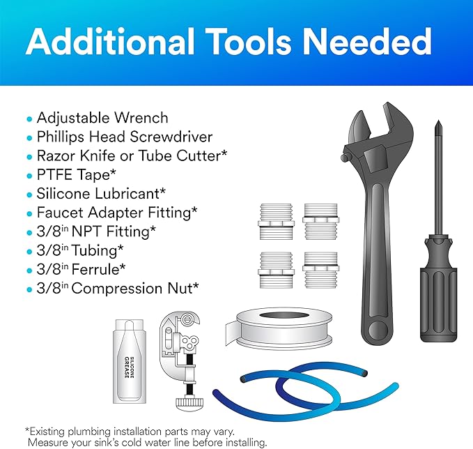 • Connects to the primary kitchen or bathroom water faucet for full flow filtration