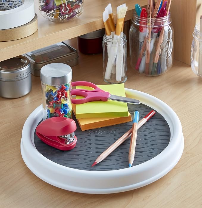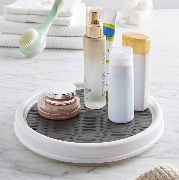 • STABLE & SECURE: Nonskid liner keeps items in place while rotating, and raised rim prevents items from falling off