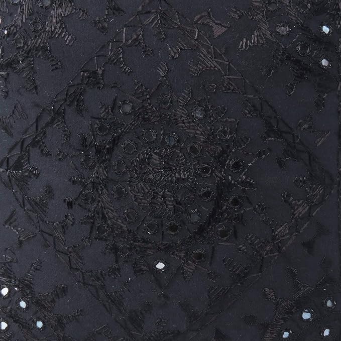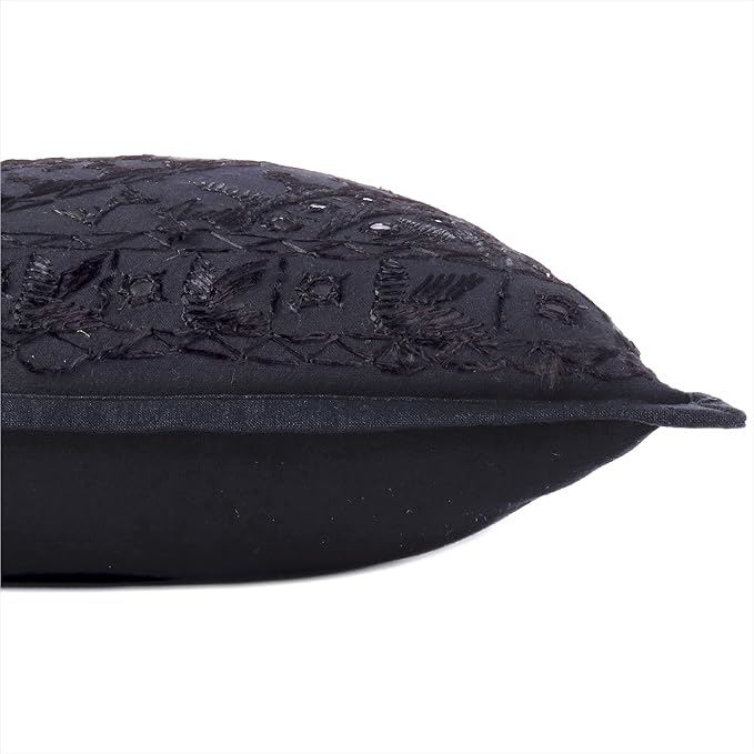 Eyes of India Embroidered Decorative Boho Throw Pillow Cover with Mirrors, Handmade Bohemian Accent Cushion Case for Sofa Couch Bedroom Living Room (Black, 24" x 24")