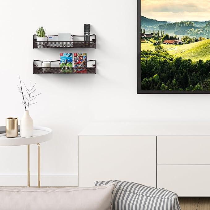 Deco Brothers Wall Mounted Single Tier Mesh Hanging Spice Rack, Set of 2, Bronze