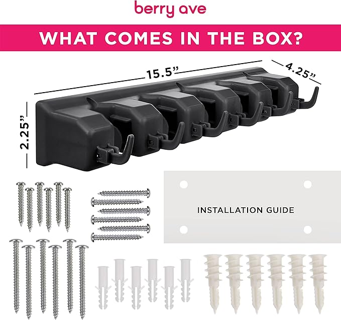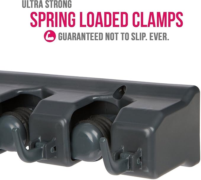 - NO SLIDE, NO MESS β Each commercial grade broom hanger has a 35 pound holding capacity. Thanks to the spring loaded, double rubber gripped slots, the Berry Ave utility hooks can hold anything from wet mops and dirty rakes to baseball bats, without any annoying slipping.