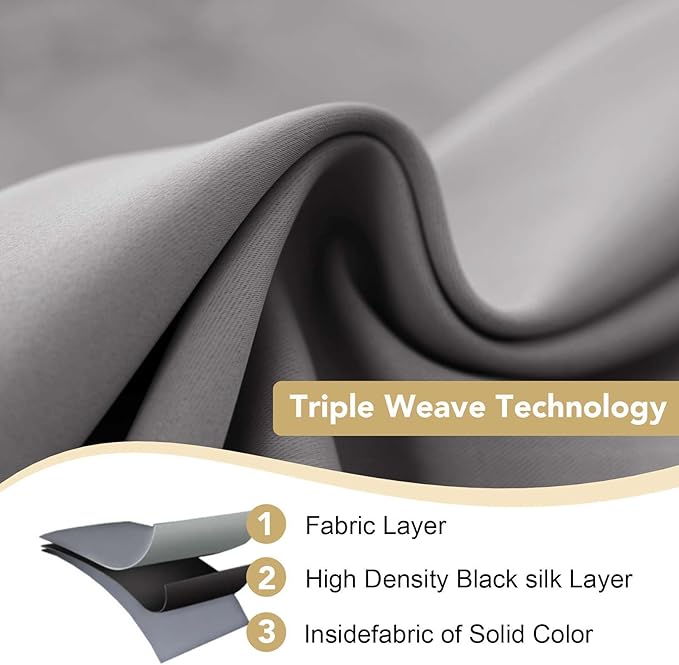 • MULTIPLE FUNCTIONS: These soft and durable curtains are made by innovative technology durable yarn, high performance on room darkening, thermal insulated, noise reducing, energy saving / efficiency and privacy protection