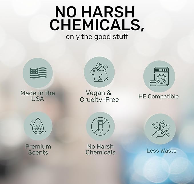 • YOUR CLOTHES WILL LOVE IT - We designed this concentrated blend of gentle washing detergents and natural fragrances to soften and reduce wrinkles and eliminate odors, stains, and dirt. Our high efficiency laundry detergent is ideal for everyday laundry, including cottons, linens, blends, and durable synthetics. It's also safe for whites and all colors, and you can use it in hot, cold, hard, or soft water.