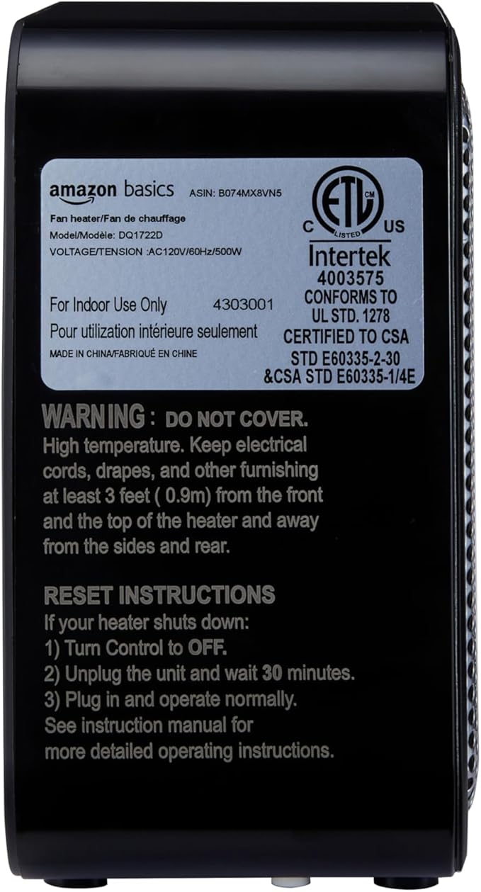 • Item Weight 1.4 Pounds : Heat Output 500 Watts