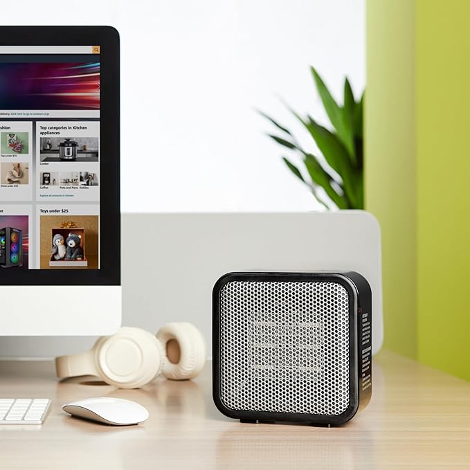 • COMPACT DESIGN: Measuring just 5.87”D x 3.15”W x 5.95”H, this heater is ideal for tables, desks, or other small spaces, providing warmth without taking up much room.