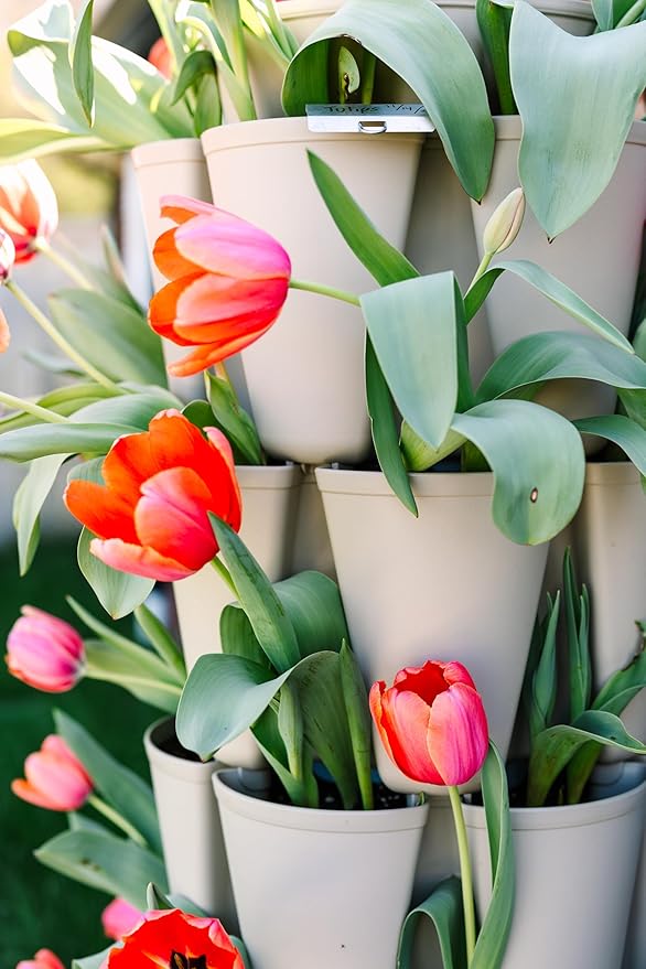Greenstalk Patented Large 5 Tier Vertical Garden Planter with Patented Internal Watering System Great for Growing a Variety of Strawberries, Vegetables, Herbs, & Flowers (Stunning Stone)