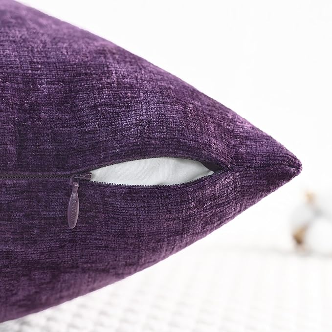 CaliTime Throw Pillow Covers Decorative 18 X 18 Inches Pack of 2 Cozy Chenille Cushion Cases for Couch Sofa Bed Living Room Home Plum Purple