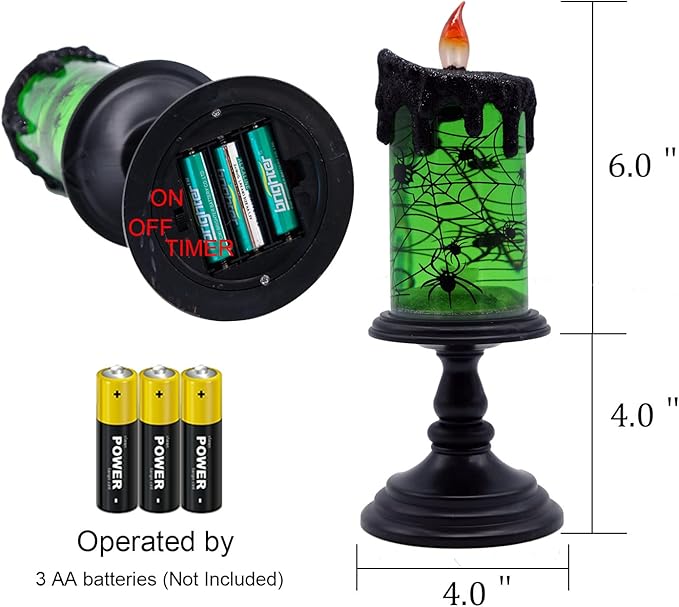 • Spinning Water and Glitter: Once you turn on the spider snow globe candle light, the candle top wick and inner light will light up, then the motor start to swirling the glitters and water keep spinning until you turn off them.
