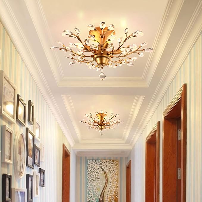 - WIDELY USE: Crystal ceiling light has 2 colors for optional,Gold show elegant, black add retro feeling, ideal for Aisle, Hallway, Bedroom, Living Room, Dining Room, Kitchen, Bar, Hotel, Balcony, Stairwells childrenâs room pass way, kids room, or small space etc. It will be eye catching for your well-appointed space no matter where you use it.