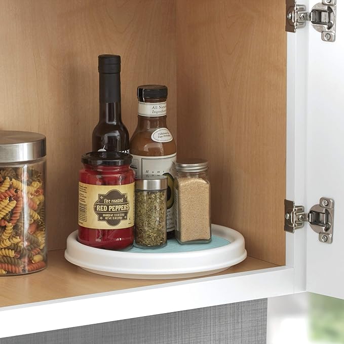 • MAXIMIZE STORAGE: Stylish 9-inch aqua sky turntable makes countertops, cabinets, closets, and even your refrigerator more organized and tidy "