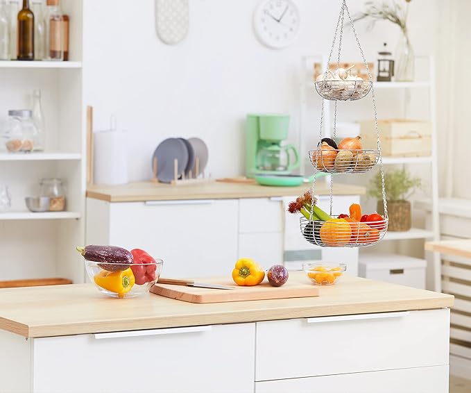 • Kitchen Organization - Display and organizer fruits in our heavy duty wire hanging fruit baskets to clearly see each fruit