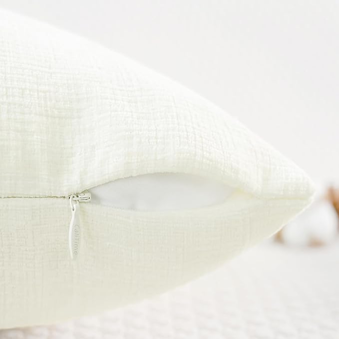 CaliTime Throw Pillow Covers Decorative 16 X 16 Inches Pack of 2 Cozy Chenille Cushion Case for Couch Sofa Bed Living Room Home Cream