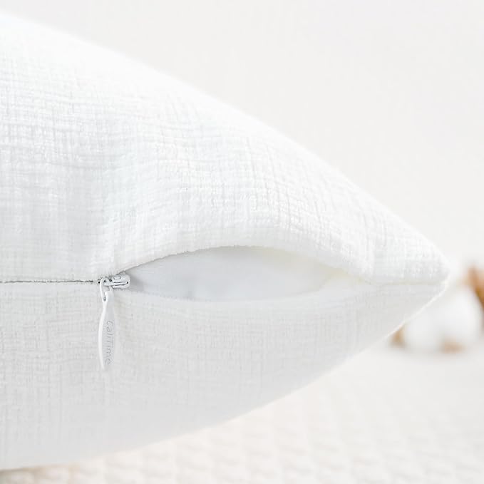 CaliTime Throw Pillow Covers Decorative 18 X 18 Inches Pack of 2 Cozy Chenille Cushion Cases for Couch Sofa Bed Living Room Home True White