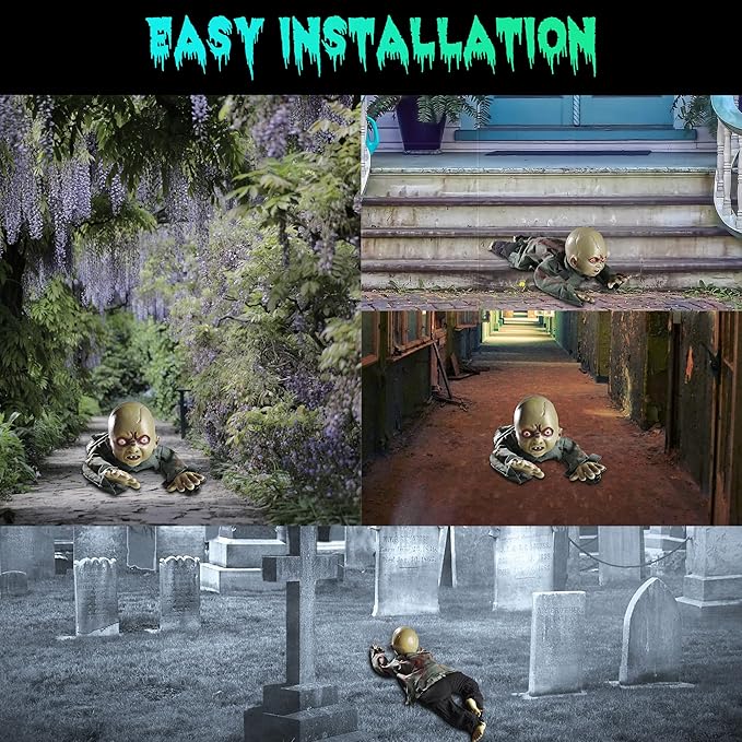 AW Halloween Animated Decoration Crawling Baby Zombie Scary Sound Sensor Activated Ghost Baby Doll Haunted House Flashing Eyes Party Outdoor Decor 2025