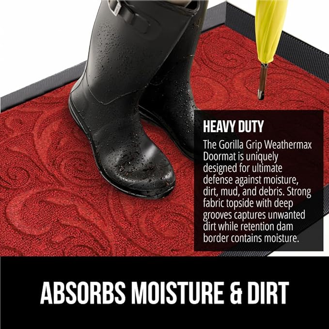 • THE ORIGINAL WEATHERMAX ALL SEASON DOORMAT: Gorilla Grip's Original WeatherMax doormat is built tough with a heavy duty, yet soft and flexible construction; deep grooves, beveled rubber border and retention dam help capture dirt, debris and moisture