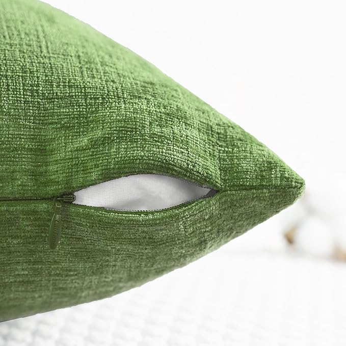 CaliTime Throw Pillow Covers Decorative 20 X 20 Inches Pack of 2 Cozy Chenille Cushion Cases for Couch Sofa Bed Living Room Home Forest Green