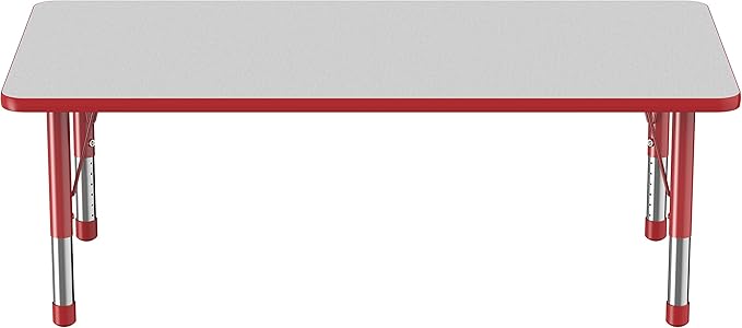 Factory Direct Partners FDP Rectangle Activity School and Classroom Kids Table (30 x 60 inch), Toddler Legs, Adjustable Height 15-24 inches - Gray Top and Red Edge