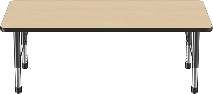 FDP Rectangle Activity School and Classroom Kids Table (30 x 60 inch), Toddler Legs, Adjustable Height 15-24 inches - Maple Top and Black Edge