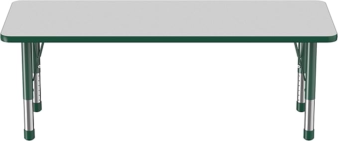 Factory Direct Partners FDP Rectangle Activity School and Classroom Kids Table (24 x 60 inch), Chunky Toddler Legs, Adjustable Height 15-24 inches - Gray Top and Green Edge