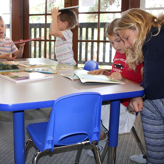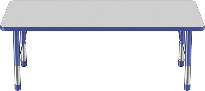 FDP Rectangle Activity School and Classroom Kids Table (30 x 60 inch), Toddler Legs, Adjustable Height 15-24 inches - Gray Top and Blue Edge