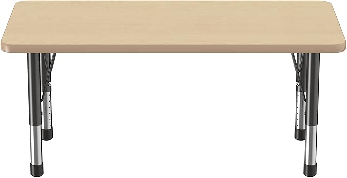 FDP Rectangle Activity School and Kids Classroom Table (24 x 48 inch), Toddler Legs, Adjustable Height 15-24 inches - Maple Top and Maple Edge