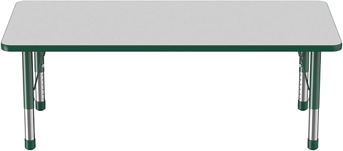 FDP Rectangle Activity School and Classroom Kids Table (30 x 60 inch), Toddler Legs, Adjustable Height 15-24 inches - Gray Top and Green Edge