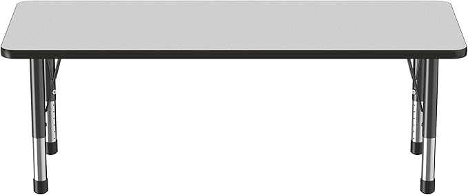 FDP Rectangle Activity School and Classroom Kids Table (24 x 60 inch), Chunky Toddler Legs, Adjustable Height 15-24 inches - Gray Top and Black Edge