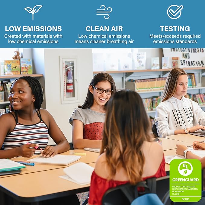 Factory Direct Partners FDP Rectangle Activity School and Classroom Kids Table (24 x 72 inch), Chunky Toddler Legs, Adjustable Table Height 15-24 inches - Maple Top and Navy Edge