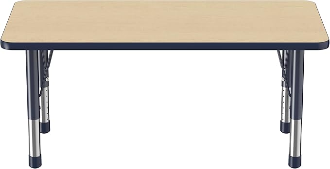 FDP Rectangle Activity School and Kids Classroom Table (24 x 48 inch), Toddler Legs, Adjustable Height 15-24 inches - Maple Top and Navy Edge