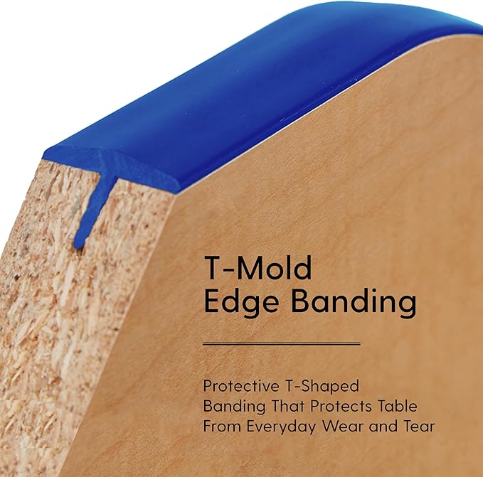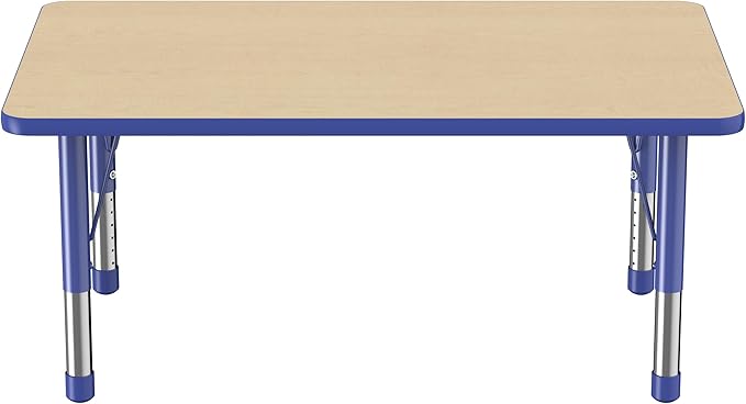 FDP Rectangle Activity School and Classroom Kids Table (30 x 48 inch), Chunky Toddler Legs, Adjustable Height 15-24 inches - Maple Top and Blue Edge