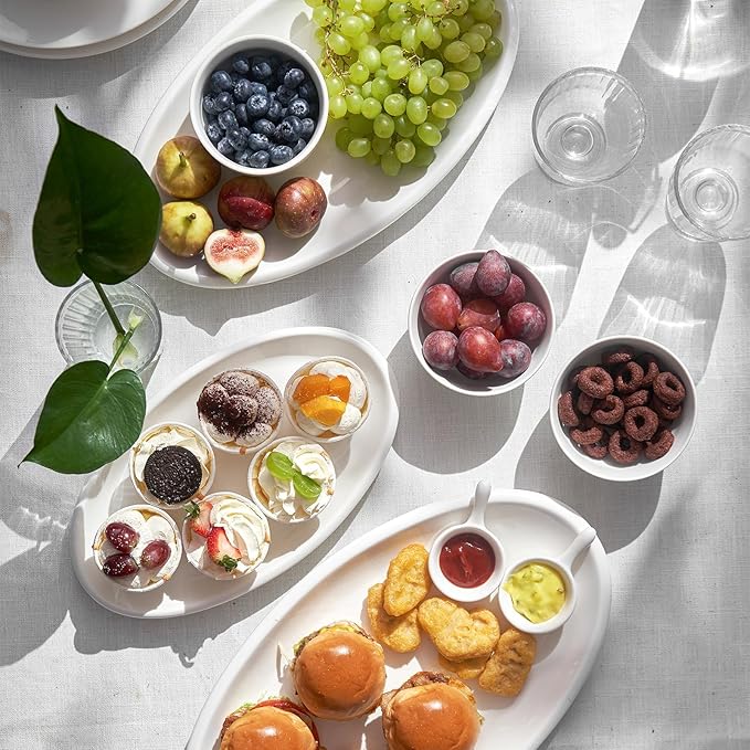- Every Family Needs A Set of 3-sized Large Serving Platters -- Large:15.8x8.8 inch, Medium:14x7.8 inch, Small:11.8x6.8 inch. With 3 sizes, these oval platters meet all your different need, ideal for serving food, snacks, sushi, fruits, fish, appetizers, sandwiches and chips/salad, dessert.