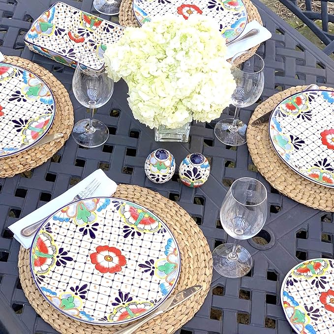 • Hand painted in Mexico using traditional pottery techniques; Bright, colorful, unique, dinnerware is perfect for housewarming and wedding gifts!