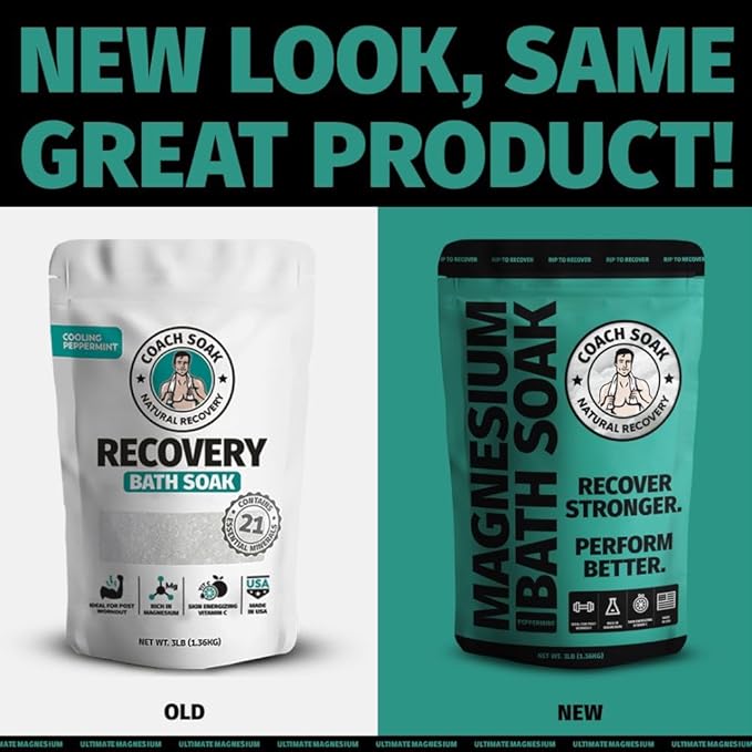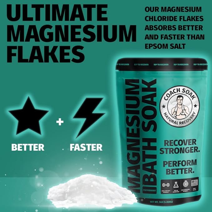 Coach Soak Recovery Bath Soak - Alternative to Epsom Salt Bath Soak - Fast-Absorbing Pure Magnesium Flakes with 21 Minerals, Bath Salts & Essential Oils - 3 lb (1 Pack) - Cooling Peppermint