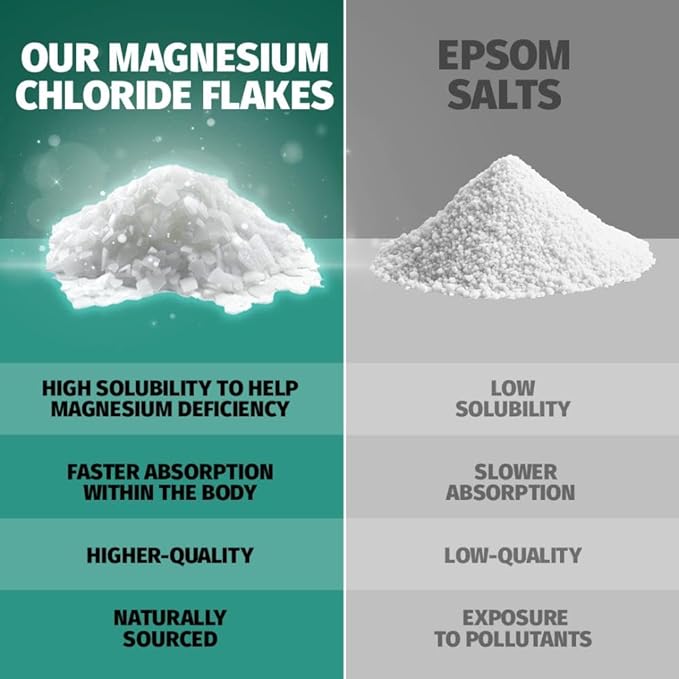 - Elevate your bath routine with Transdermal Magnesium Chloride flakes. Designed for foot or full-body soaks, our bath salt blend delivers a refreshing experience that's perfect after a long day or intense activity