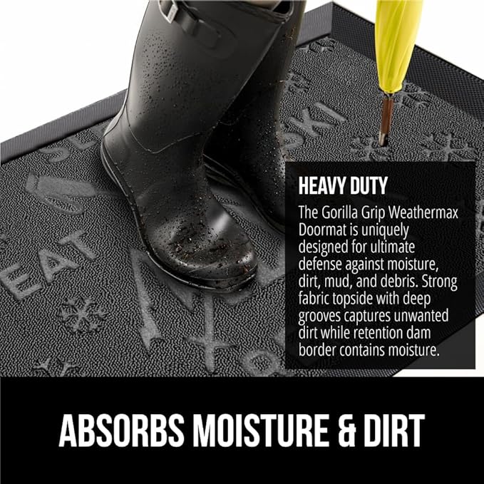 GORILLA GRIP 100% Waterproof All-Season WeatherMax Doormat 35x23, US Designed Natural Rubber, Stain and Fade Resistant, Low Profile Indoor Outdoor Door Mats, Easy Clean Patio Mat, Graphite Skiing