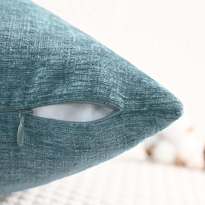CaliTime Throw Pillow Covers Decorative 18 X 18 Inches Pack of 2 Cozy Chenille Cushion Cases for Couch Sofa Bed Living Room Home Smoke Blue