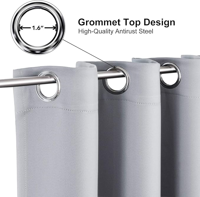 • SET DETAILS: 2 panels per package. Each panel measures 52 inch wide by 84 inch long with 8 silver metal grommets (1.6 inch inner diameter) on top, easy to install and slide.
