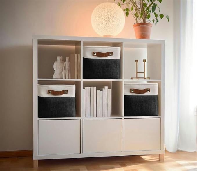 DECOMOMO Storage Bins Fabric Storage Baskets for Shelves, Linen Closet Organization Toys Nursery (Black and White, Large - 3 Pack)