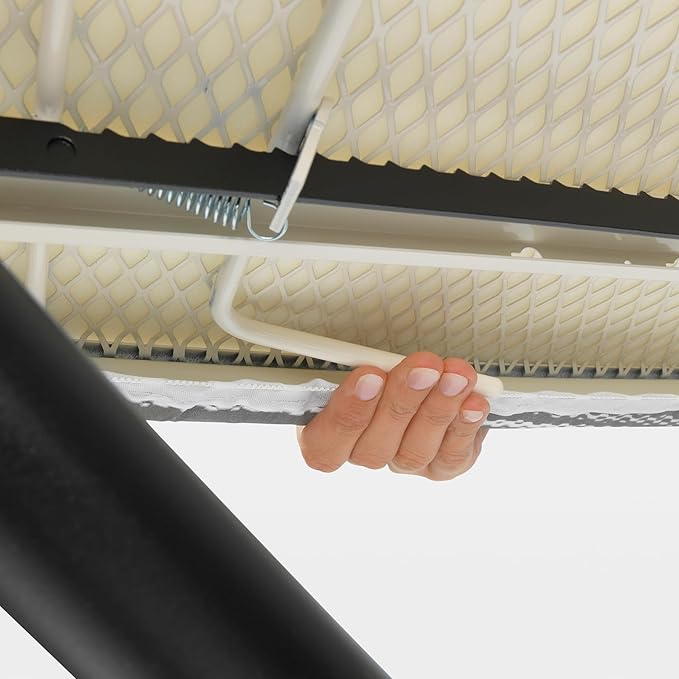 • Relaxed - asymmetric frame is suitable for ironing sitting down. No wobbling - stable and solid four legged frame (1.4" ∅ steel tube) with protective non-slip caps.