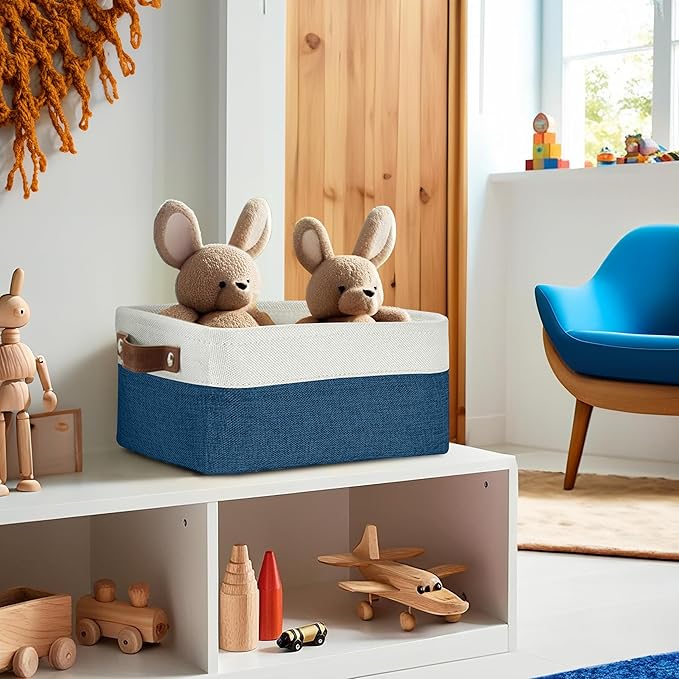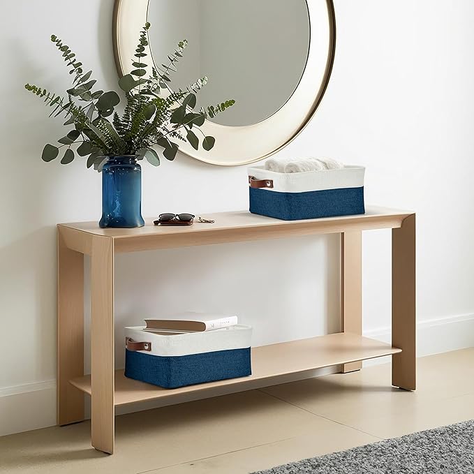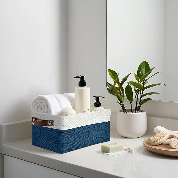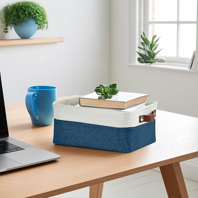 DECOMOMO Small Storage Basket, Closet Storage Bins, Baskets for Organizing Shelves (Navy Blue & White, Small - 6 Pack)