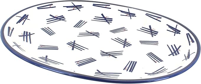 • Each one of our serving platters is shaped and decorated by hand, while glazed and high fired to long-lasting quality. Choose the size and pattern to fit your personal tastes. 13.5” x 10.5” x 1.25”.