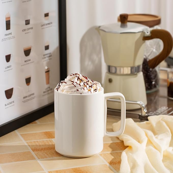 E-liu Porcelain Tea Mugs Coffee Mug Set, Large 15 Ounces Cups for Coffee, Tea, Cocoa, and Mulled Drinks, Set of 6, BlacK White Grey