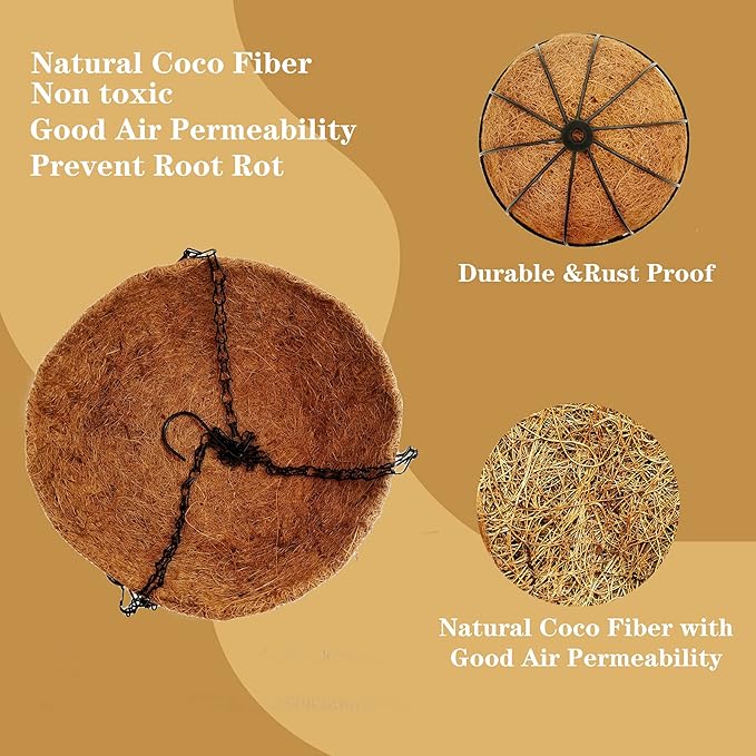 - ð NATURAL MATERIAL AND GOOD CARING:with the material of natural coconut fiber,hanging pots liners feature a good air and water permeability so they can provide good care for your plants. and they are environment- fiendly with the features of non-toxic and tasteless ,so you don't need to worry that they will harm your health and your plants.