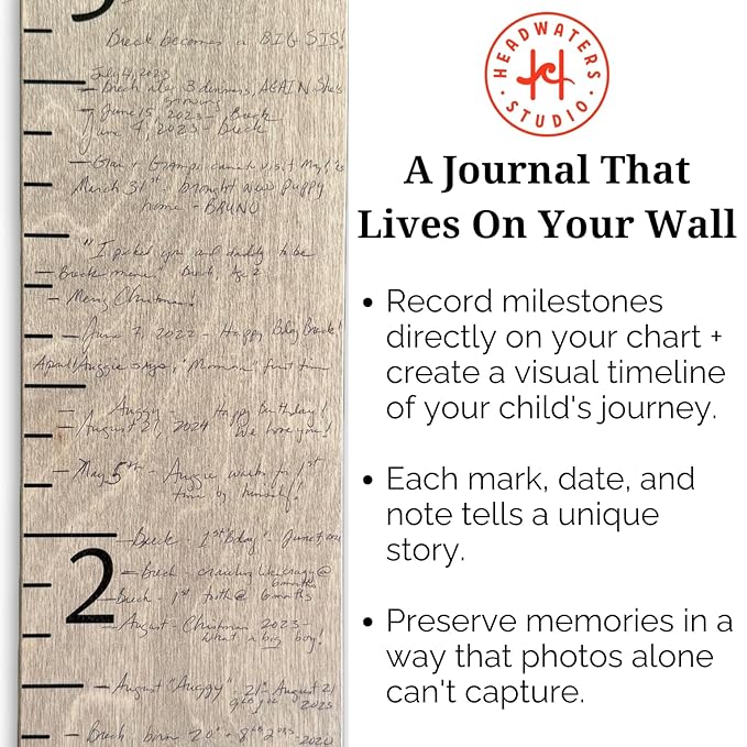 - VERSATILE GIFT OPTION: Searching for that ideal baby shower gift or a unique birthday present? Look no further! Our growth chart for wall wood is the ideal choice for new parents, making housewarming celebrations extra special, or for children of any age. It's a gift that beautifully documents the passage of time, offering a heartwarming reminder. With the ability to add past height measurements, this ruler growth chart captures every milestone in a meaningful way.