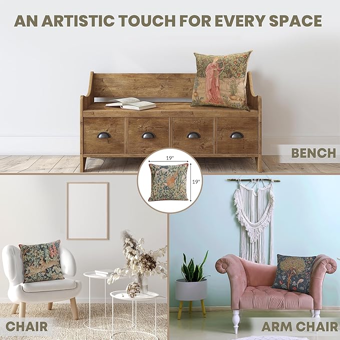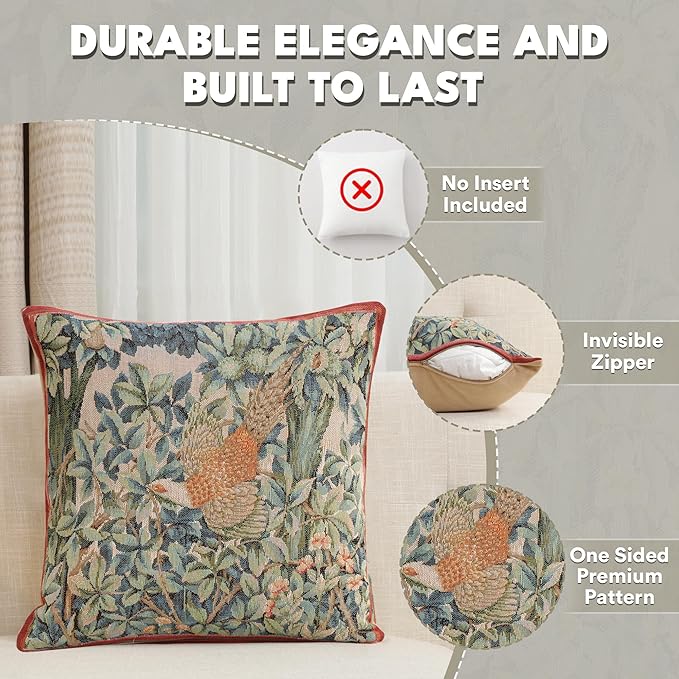 - Timeless Durability: Elevate your decor with our skin-friendly William Morris pillow covers 19âX19â, where quality and style come together. A sturdy hidden zipper ensures easy pillow insertion/removal, while the overlock stitches prevent seam ripping. Unlike thin printed cushion covers prone to tearing, our decorative pillows for couch with a super-soft backside are crafted with thick premium threads for long-lasting quality. THE PACKAGE INCLUDES A SINGLE TAPESTRY PILLOW COVER WITHOUT AN INSERT