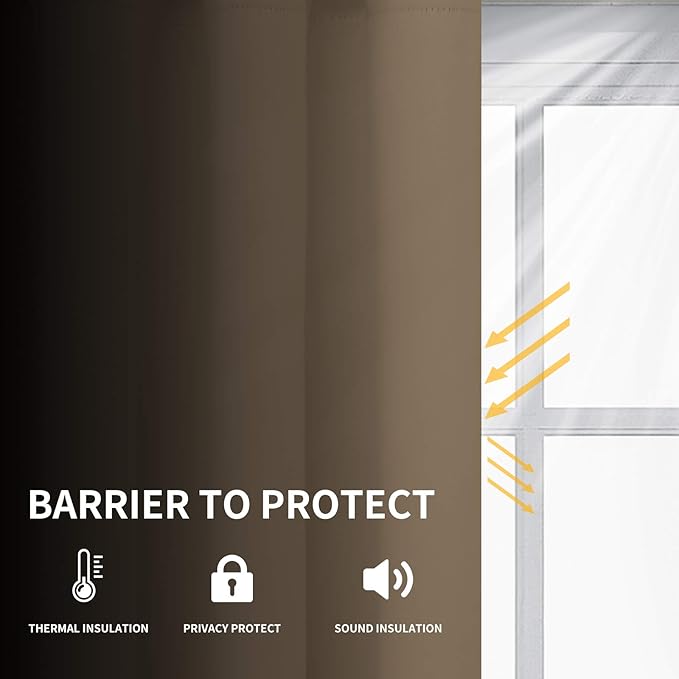 • Selection and Packaging: Our blackout curtains have 16 colors and 5 sizes. This product set includes 2 blackout curtain panels of 52" width x 46" length. Please refer to our size guide before purchasing.