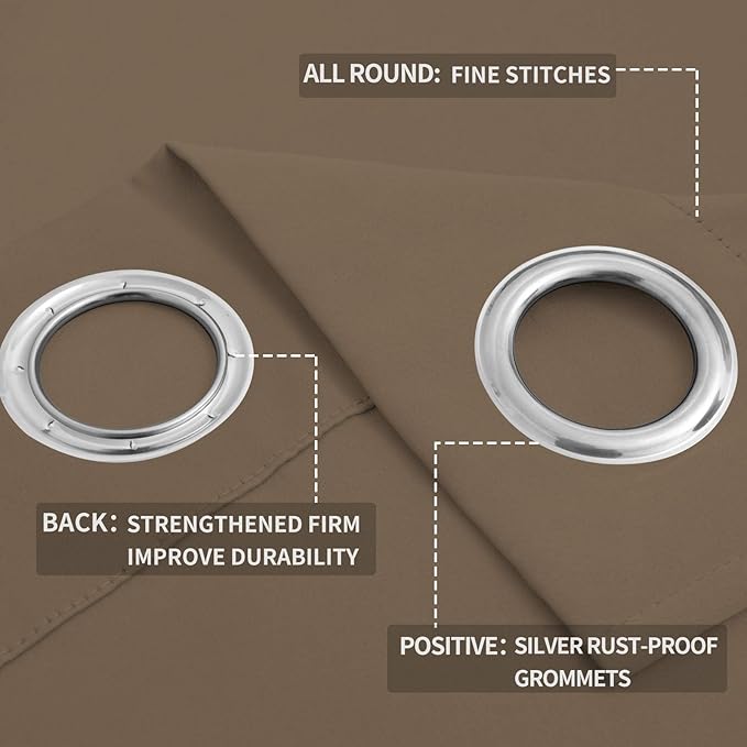 • Easy to Install: Each curtain panel has 8 silver metal grommets on top.Each grommet inner diameter is 1.6 inch, fits easily with standard curtain rods.Easy to hang, and slide smoothly. Perfect for office, bedroom, living room.