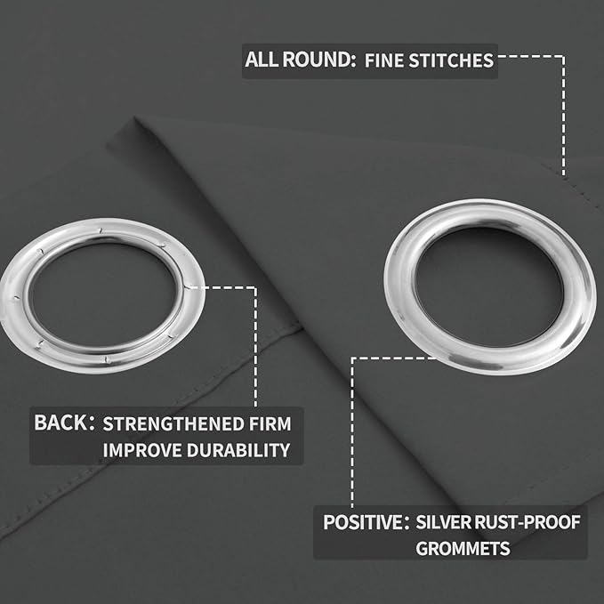 • Easy to Install: Each curtain panel has 8 silver metal grommets on top.Each grommet inner diameter is 1.6 inch, fits easily with standard curtain rods.Easy to hang, and slide smoothly. Perfect for office, bedroom, living room.
