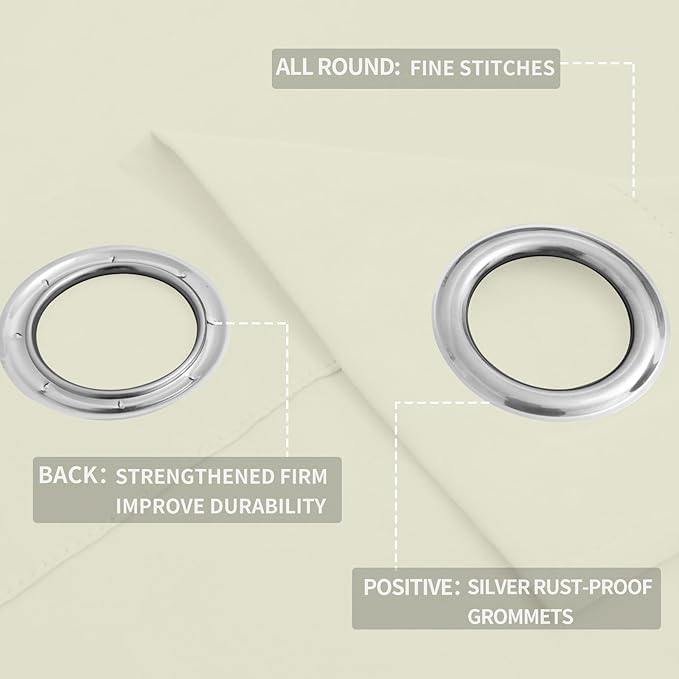 • Easy to Install: Each curtain panel has 8 silver metal grommets on top. Each grommet inner diameter is 1.6 inches, fits easily with standard curtain rods. Easy to hang, and slide smoothly. Perfect for office, bedroom, living room.