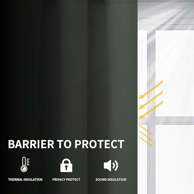 • Selection and Packaging: Our blackout curtains have 16 colors and 5 sizes. This product set includes 2 blackout curtain panels of 52" width x 46" length. Please refer to our size guide before purchasing.